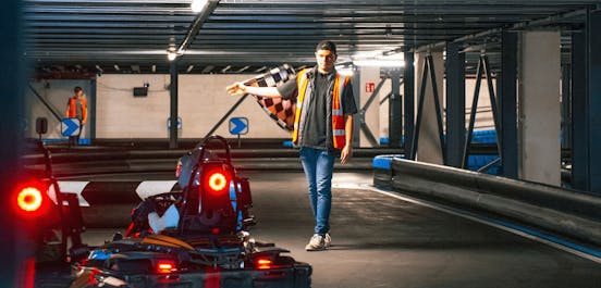 Elke coureur krijgt een gedetailleerde veiligheidsbriefing voordat hij of zij in volle uitrusting de baan op gaat. Na elke kartsessie is er een korte pauze waarin alle racers hun persoonlijke rondetijden kunnen controleren per e-mail. Je krijgt ook een hele reeks tips en tricks van ons team, zodat je alles uit je sessie kunt halen!