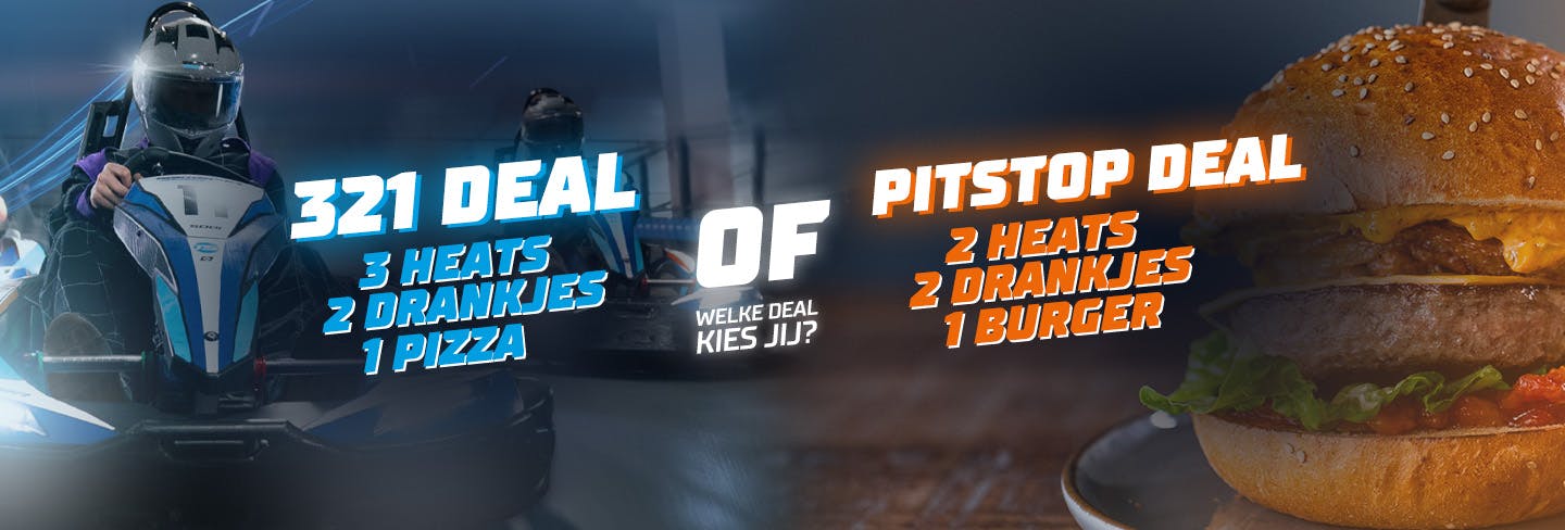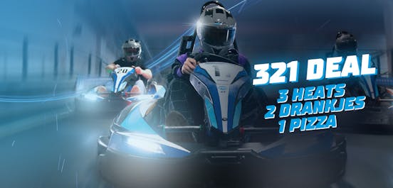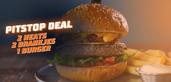 2 heats karten, 2 drankjes en 1 burger. De Pitstop Deal is jouw complete pakket voor een middag of avond vol actie. Je rijdt twee heats van 10 minuten, met tussendoor een korte pauze om op adem te komen, je lijnen te verbeteren en even te kijken hoe de rest het doet.